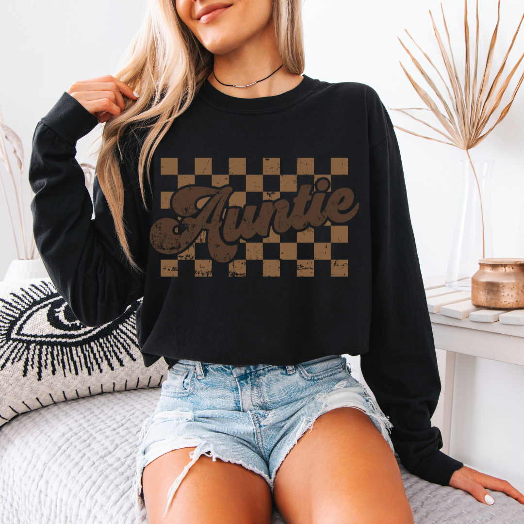 AUNTIE ( Brown font with lighter brown checkered ) - made to order